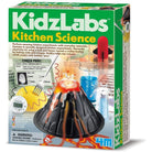 - contains everything for 6 different kitchen experiments: a vinegar rocket, a volcano, fruit battery, rock candy, fingerprints, and invisible ink