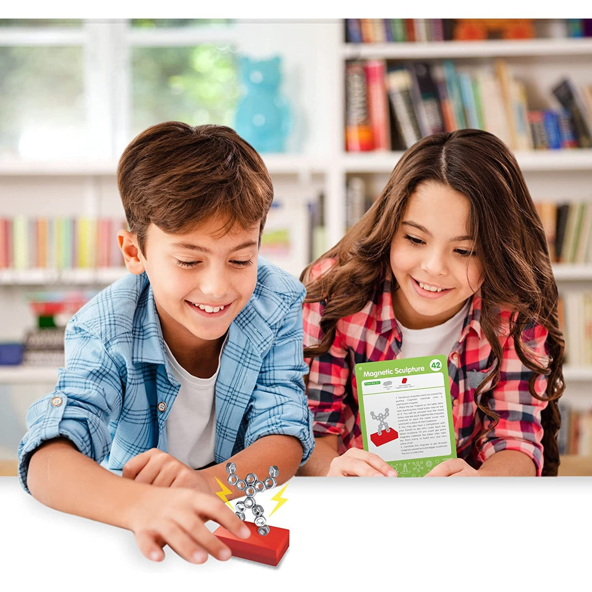 Discovery the fascinating world of science with this all-in-one kit from 4M. There's over 40 scientific projects to work on, such as making electricity in a tube, powering a speedy racer with a super magnet, create a mini tabletop water cycle (make it rain!), construct a hover disc racer with a ballon, and so much more. The set comes with an 18-page activity booklet to walk you through the experiments. A great selection of STEM projects for your science-curious kiddos who want to learn how things work!