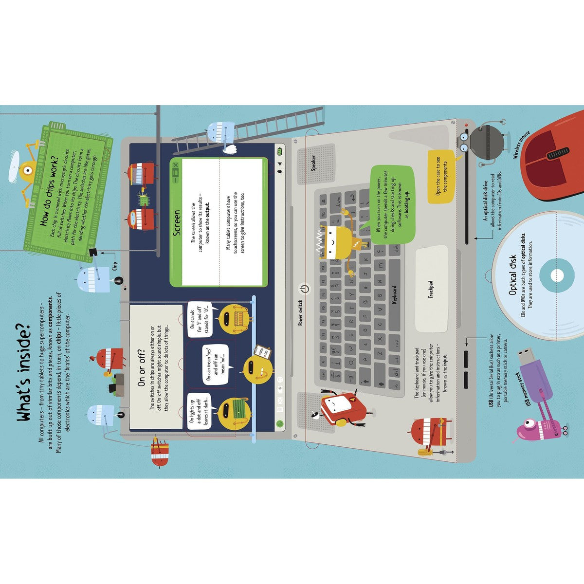 Flaps to lift on every page reveal what goes on inside a computer, how coding works and how computers talk to each other across the internet. The principles of coding, from simple commands to algorithms, are explained with a treasure hunt game and puzzles, and there are examples of programs in the coding language Scratch™. Includes internet links to specially selected websites where children can discover more coding ideas, tips and games. Computer coding is now a compulsory topic on the UK National Curriculum for primary schools, and children learn to create and debug simple programs at Key Stage 1.