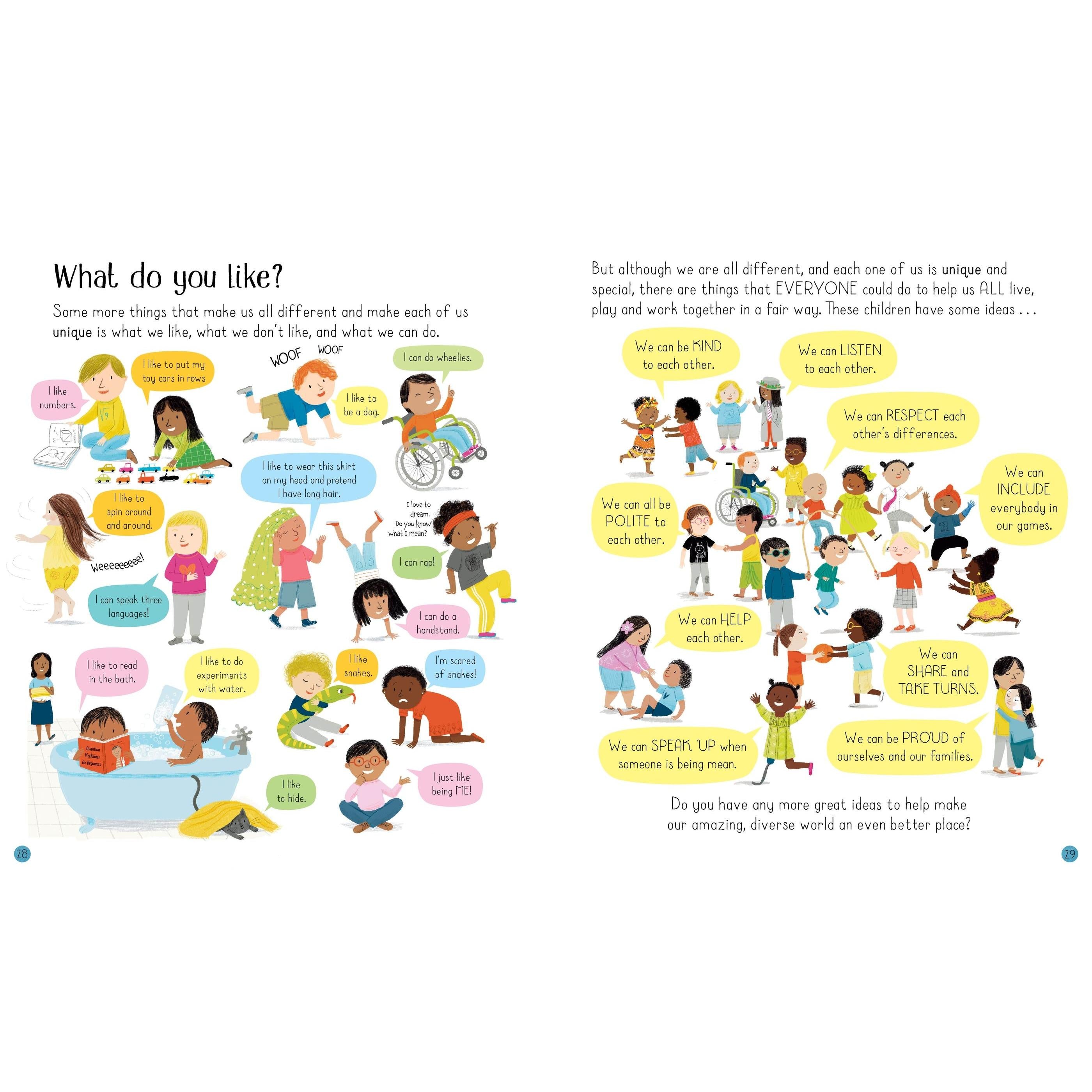This dynamic and joyous exploration of difference helps young children learn to respond in a kind and equal way to everyone, regardless of shape, size, age, physical and mental ability, gender, ethnicity, beliefs, language, culture, background, and so on. With topics ranging from clothes and food to homes, festivals and families, there is plenty for children to talk about as they find out about what makes people different and what makes them unique.