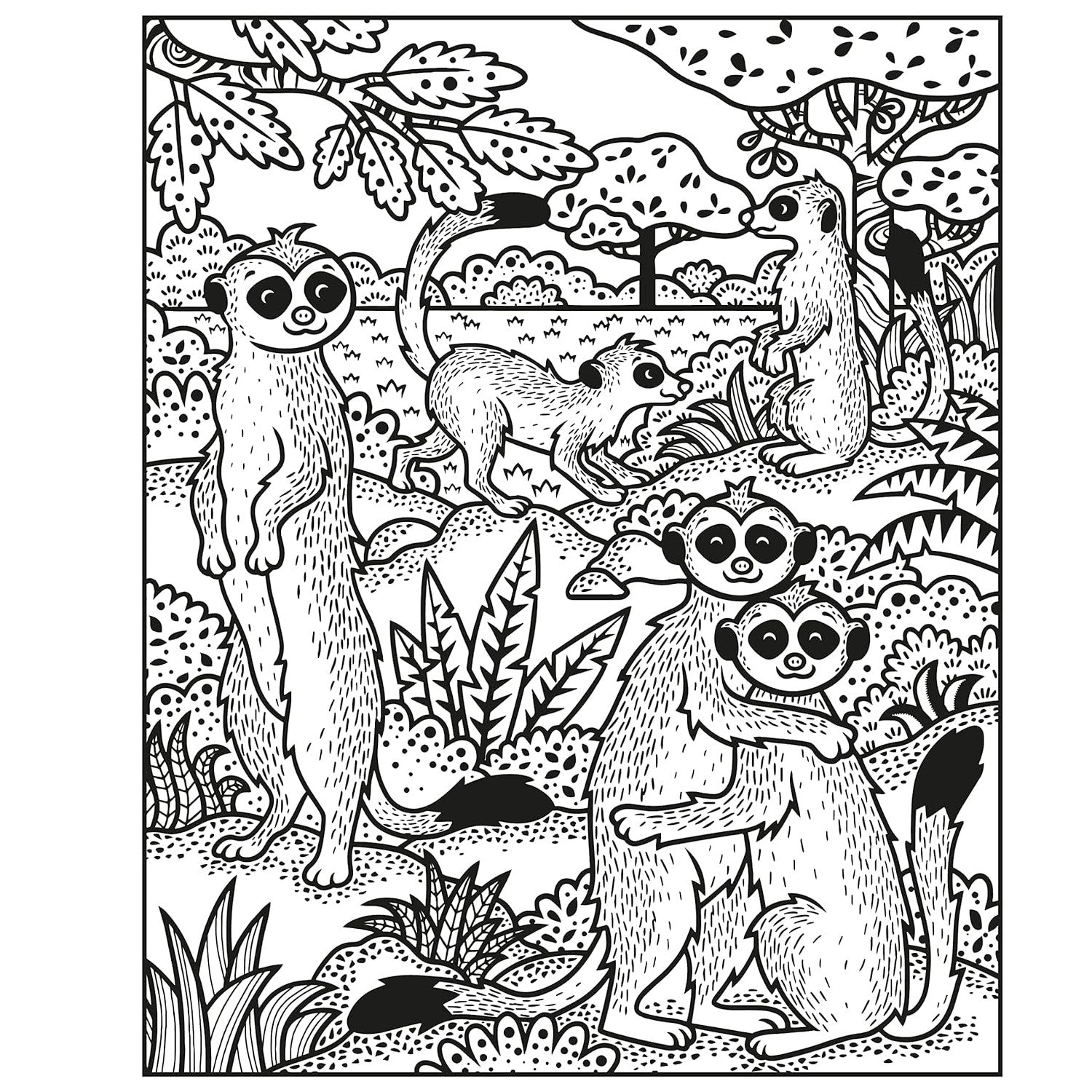 Brush water over the black and white illustrations and watch as the animal scenes burst into beautiful color! Sixteen detailed pictures include kangaroos, penguins, hippos, meerkats and lots more. With a handy fold-out back cover to prevent colors running through to the page beneath.