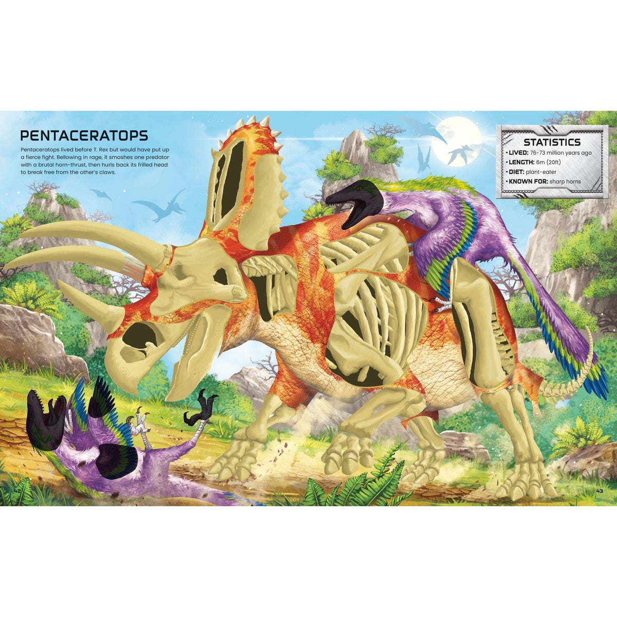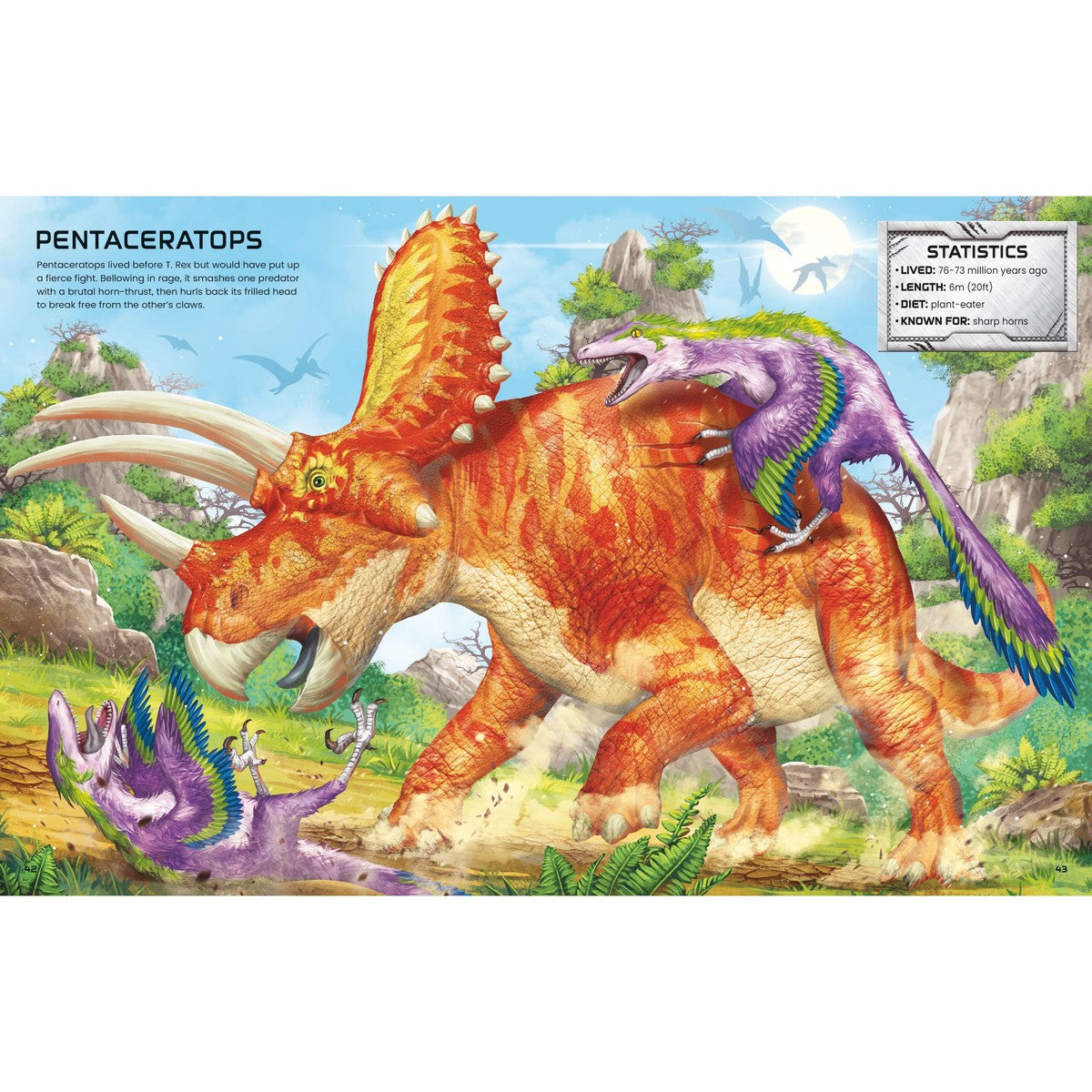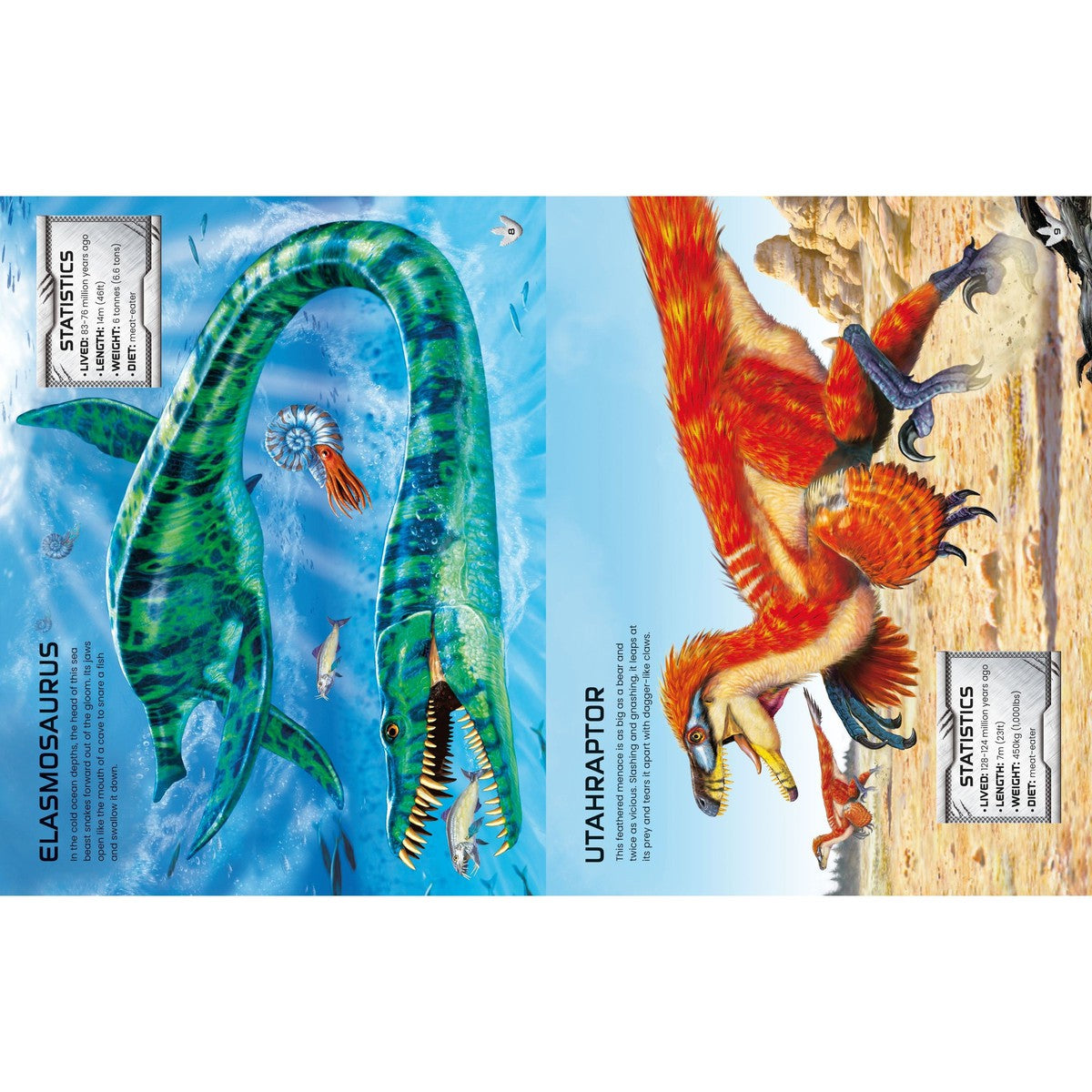 Children will have hours of fun completing more than 30 of fiercest, hugest and most incredible dinosaurs of the prehistoric age with this roar-some sticker book. From Triceratops and T. Rex to flying pterosaurs and monstrous underwater reptiles, finish the exciting pictures with over 300 stickers of swishing tails, terrifying teeth, horns, scales and claws. There are fascinating dinosaur facts and statistics on each page too.