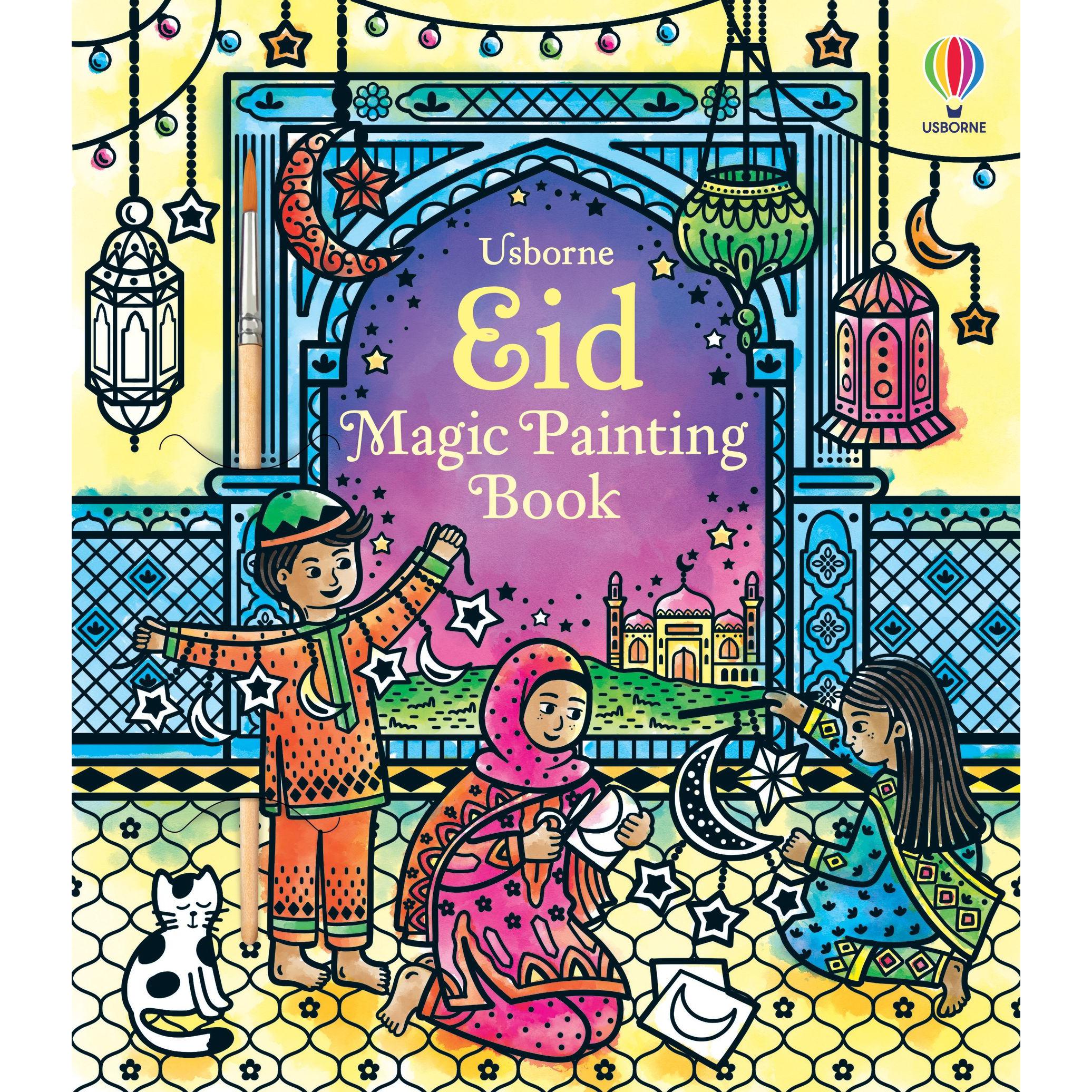 Filled with images showing different aspects of the Muslim festival of Eid al-Fitr, from families buying new clothes and decorating their homes and to scenes of fireworks, looking for the new moon and delicious festive food. Just brush water over the black and white designs to reveal an uplifting array of vivid colors. A mess-free way to keep children busy. Simply tuck the waterproof flap under each page as it's painted, to stop water from seeping through to the rest of the book.