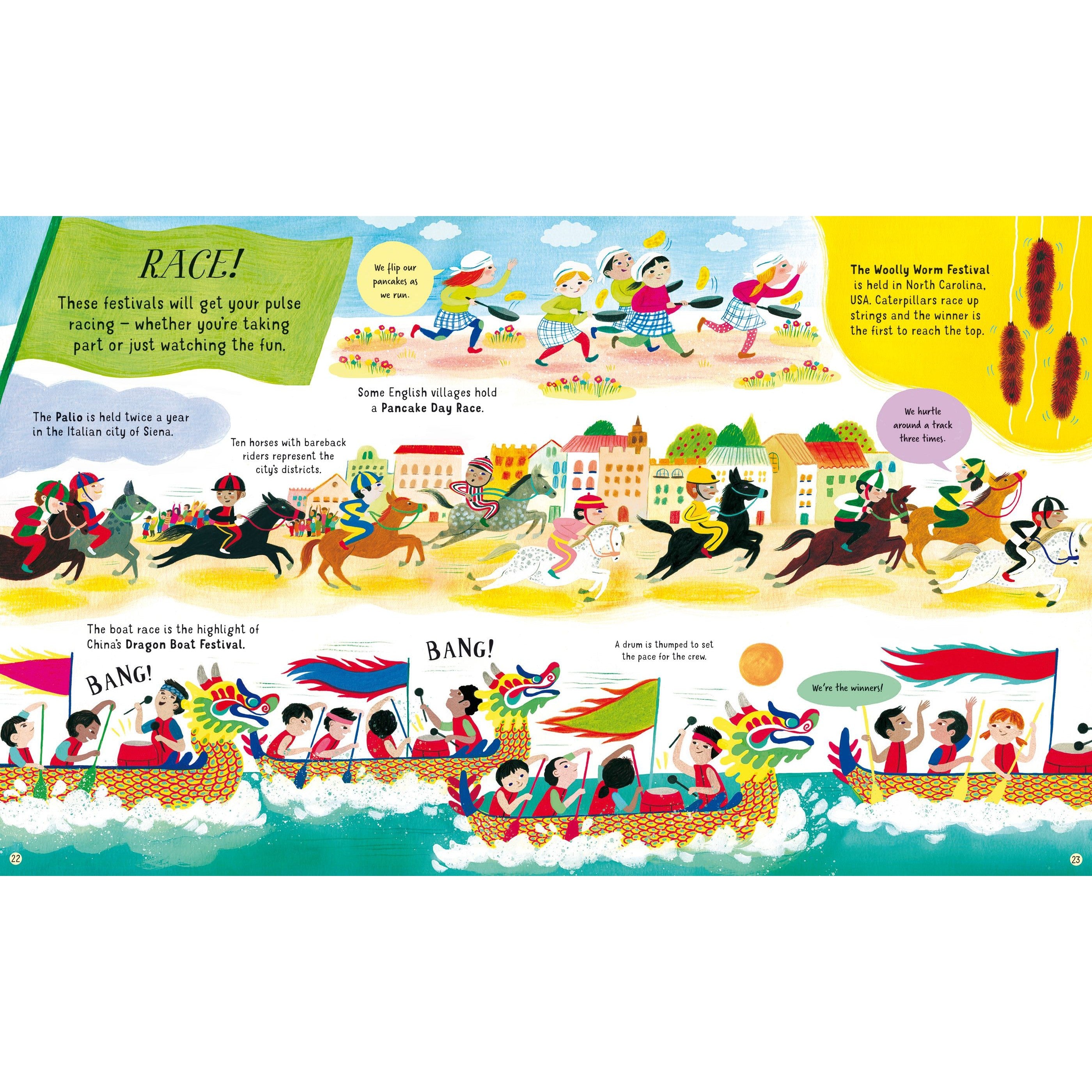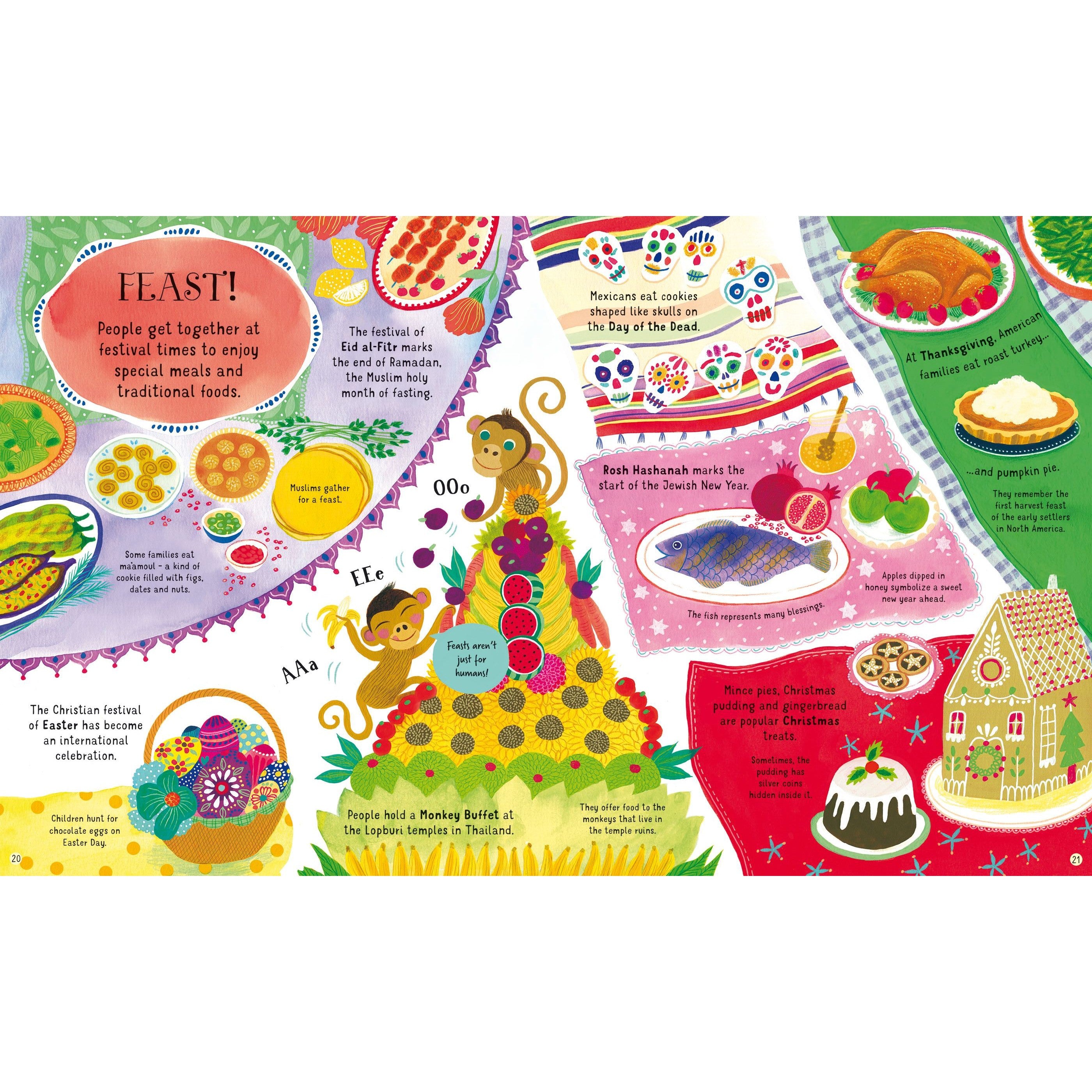 An inviting feast of festivals, from well-known celebrations, such as Christmas, Hannukah, Eid and Diwali, to more surprising events such as the Woolly Worm Caterpillar Race and the Hungry Ghosts' Feast. Young children can dip in at any page and feel all the fun of the celebration, while learning about different cultures and traditions.