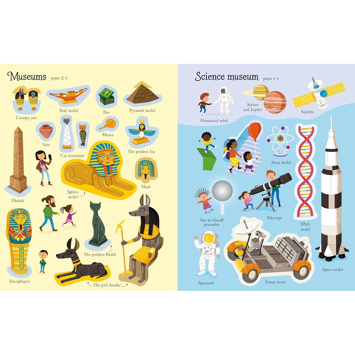 This fascinating book is packed full of dinosaur bones, Egyptian mummies and dozens of other curious objects. There are over 120 stickers to complete the scenes and bring each museum to life, including a science museum, costume museum, natural history museum and more. A great follow-up activity after a trip to a museum.