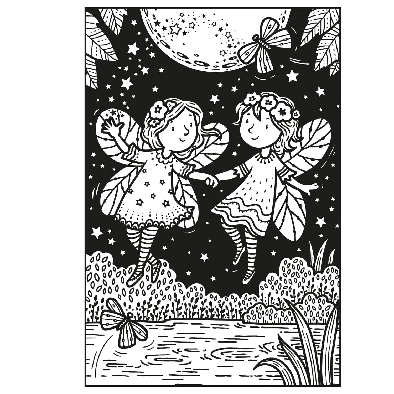 See the fairies burst into dazzling colour as you brush water over the black and white illustrations! Scenes include fairies, butterflies, toadstools and lots more, and there’s a handy fold-out back cover to prevent colours running through to the page beneath. Part of a range of pocket-sized paperbacks that are perfect for holidays and journeys.