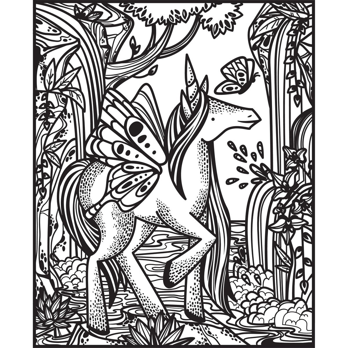 Brush water over the black and white illustrations and watch the magical unicorn scenes burst into colour! Sixteen detailed scenes include unicorns playing in a waterfall, collecting apples in an orchard, flying above a rainbow and much more. The perfect gift for unicorn lovers, with a handy fold-out back cover that prevents colours running onto the page beneath.