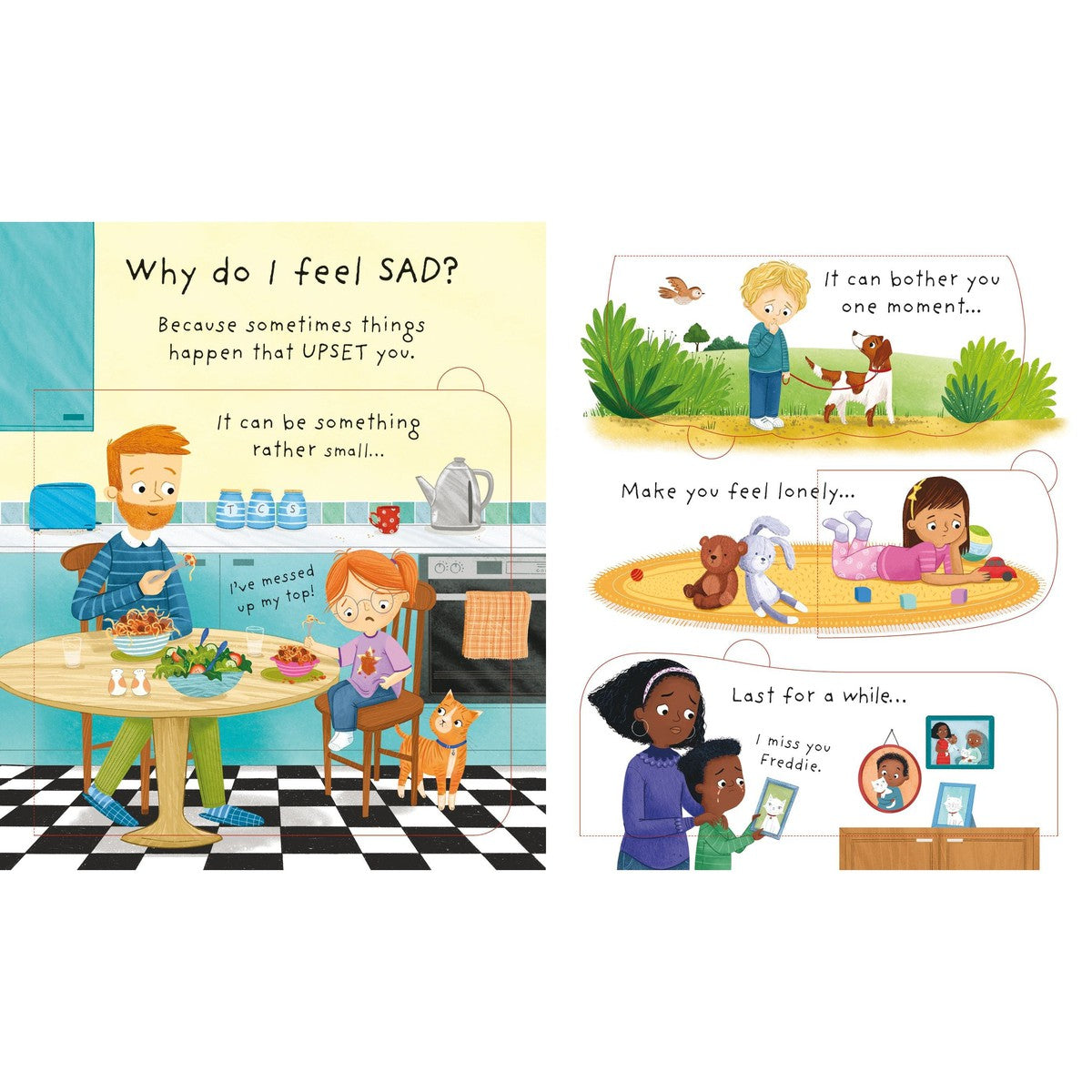 It's normal and OK to feel sad at times. It happens to everyone, for all sorts of different reasons. We might just show it in different ways. This book uses thoughtful, engaging illustrations and gentle, friendly text to help children recognise sadness, understand why they might feel that way, find ways of coping and ways to feel happy again.