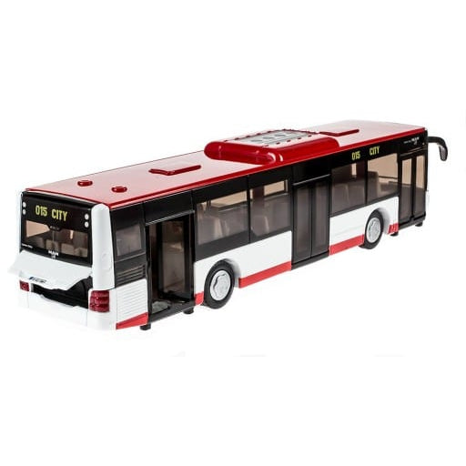 Based off of the original MAN Lion's City bus, this model has all the features of the original: two doors on the righthand side, as well as a rear door, tinted windows, two axles, and rearview mirrors.