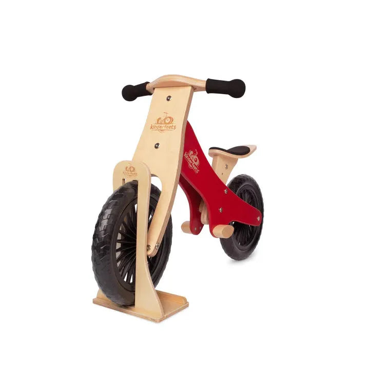 Help little ones understand the importance of keeping their belongings in a safe space with the Kinderfeets Bike Stand. Instead of laying the bike on its side or leaning it against a wall, use this simple and functional bike rack to store it! By doing so, children learn to maintain the quality of their belongings and also develop organizational skills.