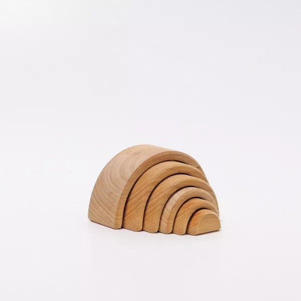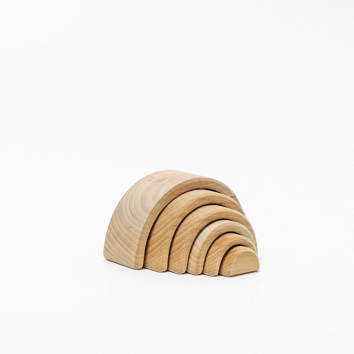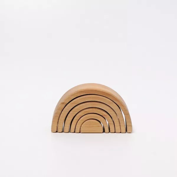 Bring some fun to everyday with this natural version of our best selling stacking rainbow! Extend pieces to create a miniature tunnel for your cars and trucks, then build to great heights for mountains, cluster together for tiny fairy homes, or lengthen into hills and bridges. Turn pieces on their sides to weave marble tracks and then neatly stack back in order to sit beautifully on the shelf.