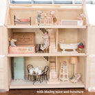 - pictured with Plan Toys dollhouse furniture sets and family and Maileg mice and furniture