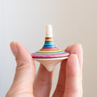 When was the last time you played with tops? Some of the best tops we have found come from a small family in Austria. All their tops are painstakingly made by hand out of locally sourced wood. One top can take up to 20 separate stages to complete! Beautiful colours, unparalleled attention to detail and lovely shapes make these tops the best out there. Watching these tops spin is mesmerizing, and adults and kids alike are entranced when testing these tops out at the shop.- measures 1.75" x 1.5"