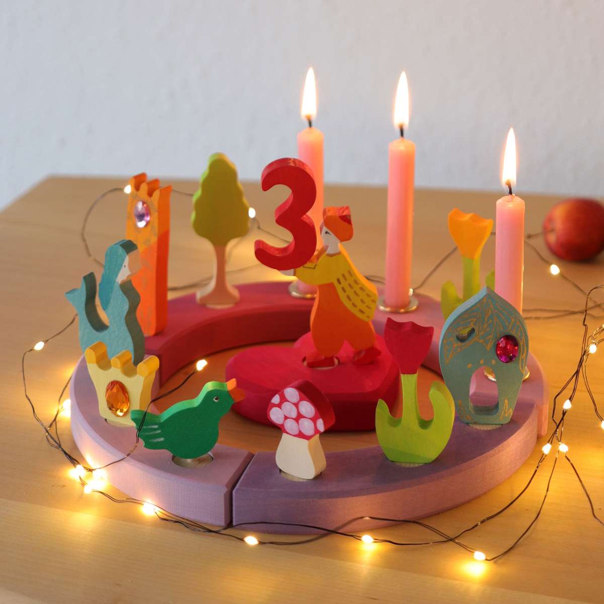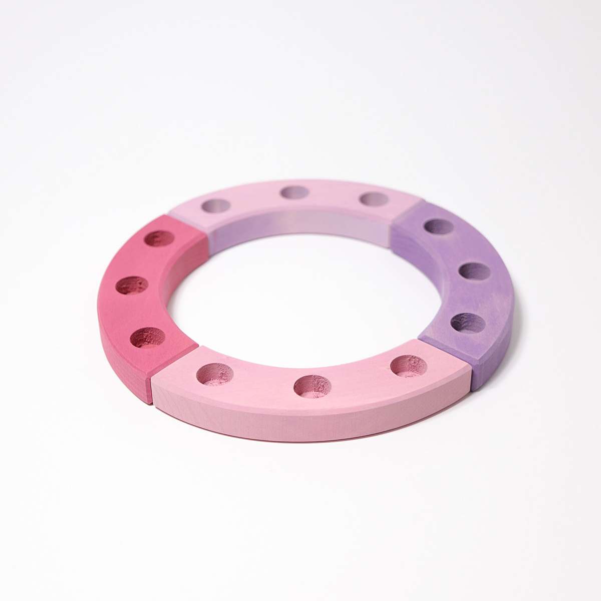 This wonderful decorative ring from Grimm's is perfect for on a birthday table display, or year-round on a window sill or nature table. Four pieces with 3 holes each, for 12 holes total. Make special displays for birthdays and other occasions by arranging different decorative figures and candles, sold separately.