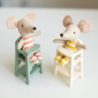 A special high chair for your Maileg baby mice to sit. This wooden chair is a lovely off-white and fits Maileg baby mice and MY-sized mice and rabbits.