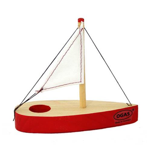 Ocean blue and ready to sail the seven seas! These mini wooden sailboats are great fun in the tub, at the pond, or floating on a sea of building blocks. With a single sail attached by string and eyelets to the main mast this miniature boat is ready for your next adventure. Tie a string around the sail to pull them through the waves for a perfectly Christopher Robin inspired escapade! Or, set a large bucket or tub outside and let the kids splash around.