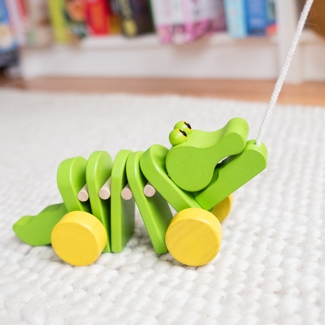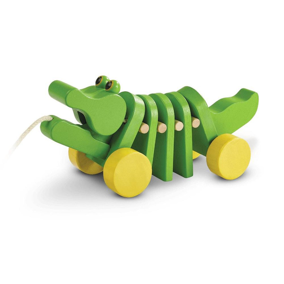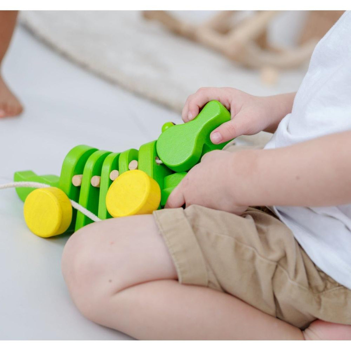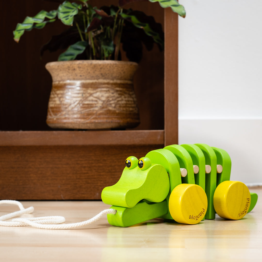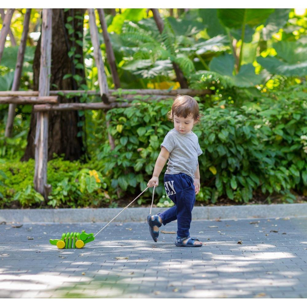 When pulled along, the alligator moves his head and tail up and down making a click-clack sound. A great buddy to encourage early walkers.