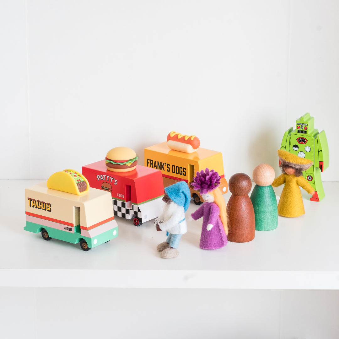 Candylab originated as a publicly backed kickstarter campaign. Two strangers met while at the playground with their kids and not long afterwards the dream of 60's American modernist toys was born. After amassing a huge following of supporters, their classic car and toy designs are now available for the coolest of kids to the savviest of collectors. With a passion for classic cars, mid-century design, and a desire to be rid of the forgettable, disposable plastic toys that fill every dumpster, Candylab creates heirloom wooden toys that are simple, durable, and allow the child to drive their own playtime.