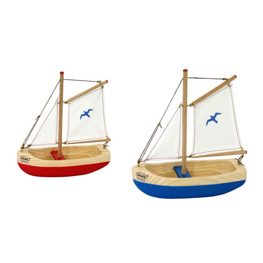 Bright red or ocean blue and ready to sail the seven seas! These little wooden sailboats are great fun in the tub, at the pond, or floating on a sea of building blocks. With dual sails attached by string and eyelets to the main mast this miniature boat is ready for your next adventure. Tie a string around the sail to pull them through the waves for a perfectly Christopher Robin inspired escapade! Or, set a large bucket or tub outside and let the kids splash around.