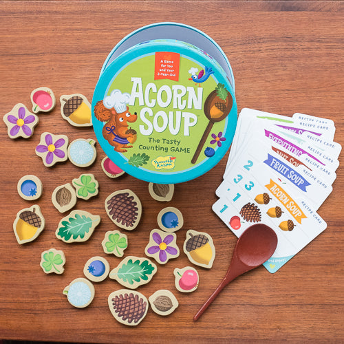 Spend quality time connecting with your kiddo through play and boost their brain development at the same time! These toddler games focus on developing emotional intelligence, critical thinking and motor skills. Many of these games have pieces that double as imaginative play pieces making them all stars for play value (for example the Acorn Soup game pieces can also just be fun play food).