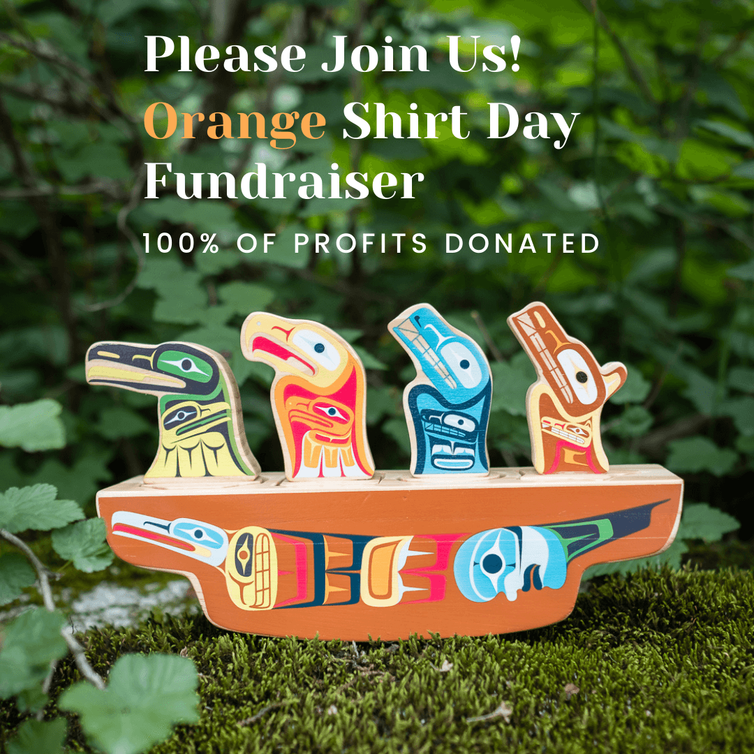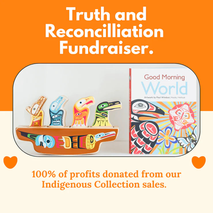 We donated 100% of profits from our our Indigenous Collection to the Orange Shirt Society and the BC Aboriginal Child Care Society. The Orange Shirt Society supports Residential School Reconciliation and work to create awareness of the individual, family and community intergenerational impacts of the Residential School system. They promote “Orange Shirt” activities and spread awareness of the concept “Every Child Matters”. The BC Aboriginal Childcare Society is committed to ensuring that every Indigenous child in BC has access to spiritually enriching, culturally based, high quality early childhood development services.