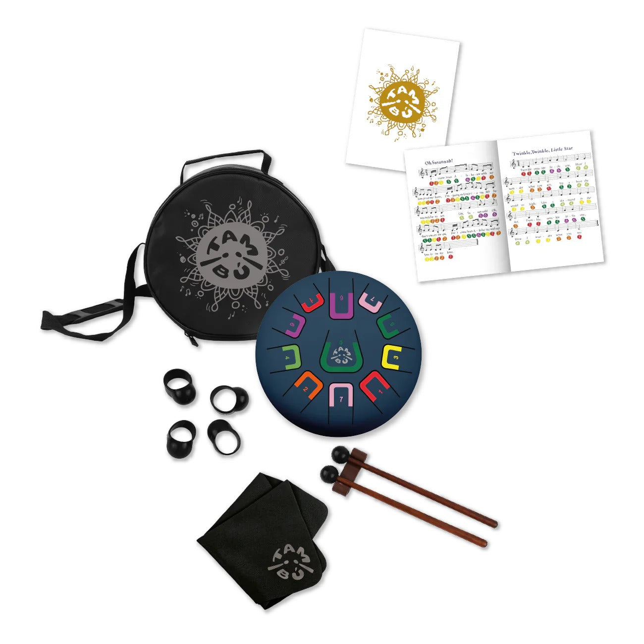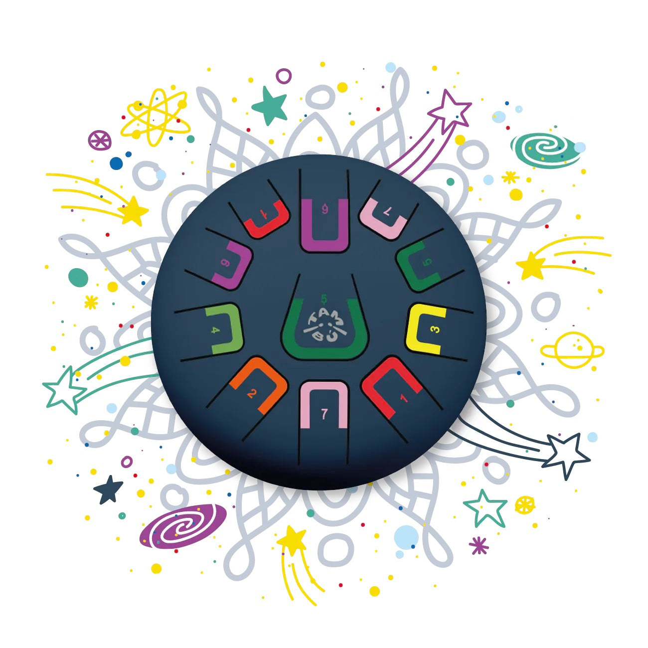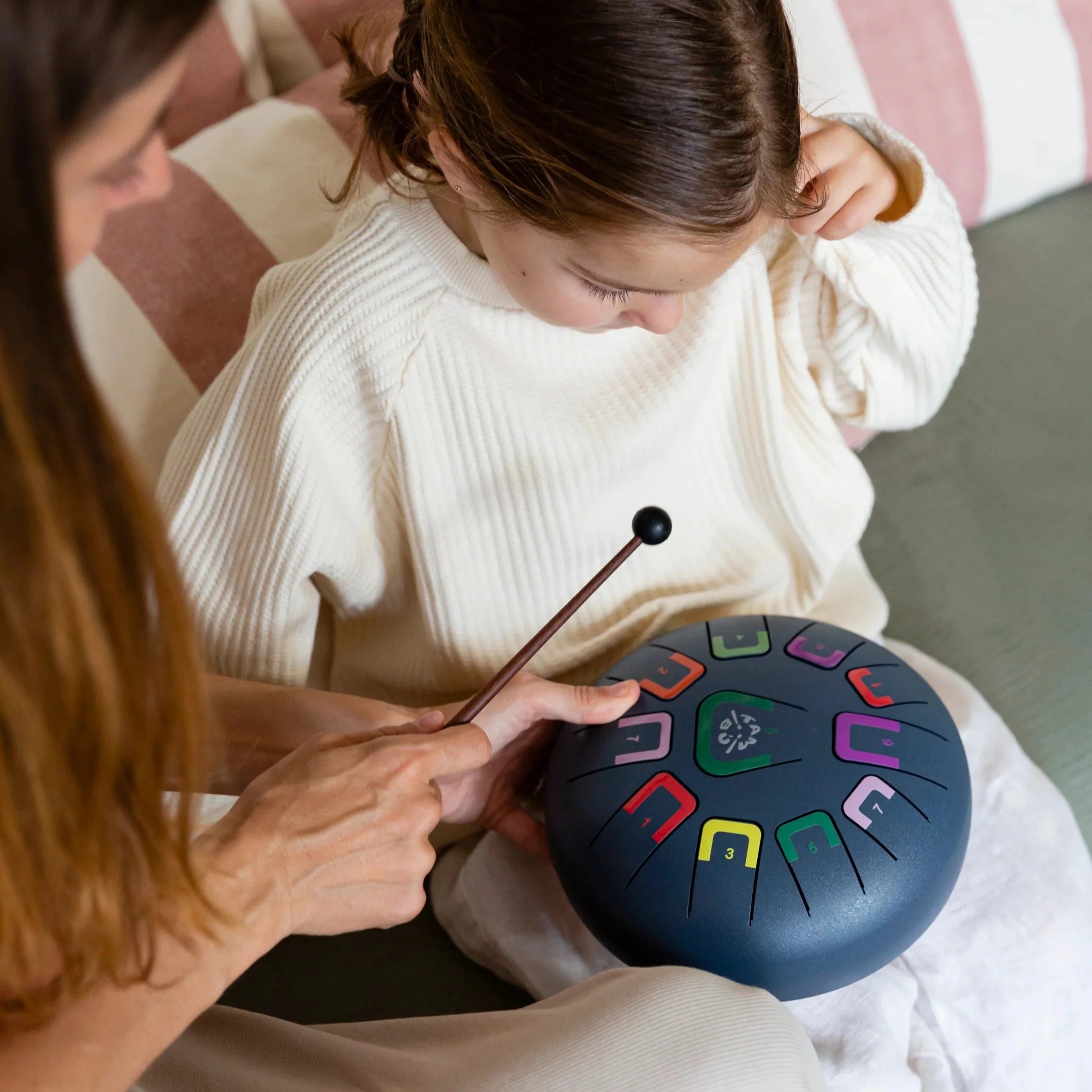 Tambú is an innovative tongue drum designed for all ages. It allows you to create harmonious melodies from the very first moment, with no prior musical knowledge required. Its color and number coding system makes learning intuitive and fun.