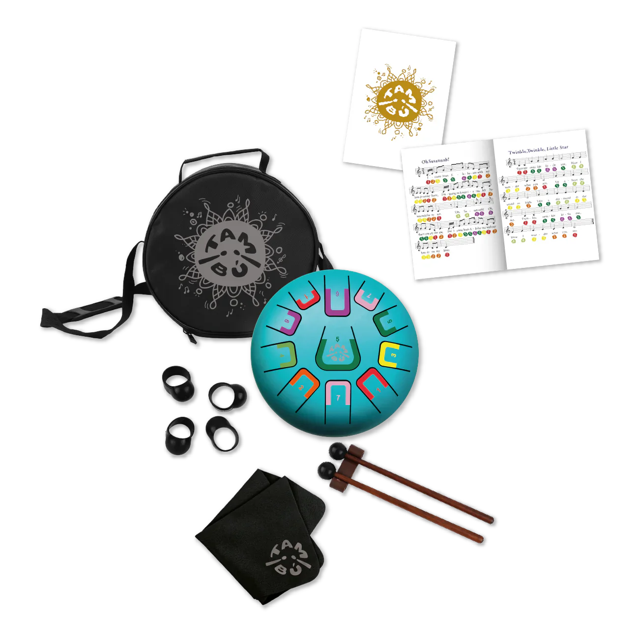 Tambú is an innovative tongue drum designed for all ages. It allows you to create harmonious melodies from the very first moment, with no prior musical knowledge required. Its color and number coding system makes learning intuitive and fun.