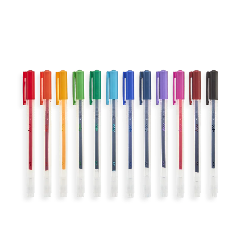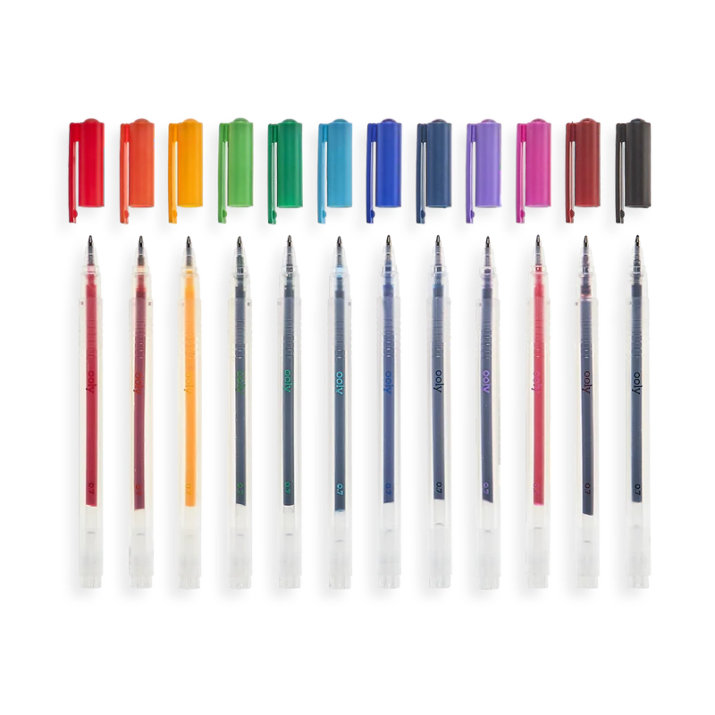 Combining the smooth gel experience of a gel pen with the precision of a fine point pen and you've got yourself the perfect combination for precise penmanship. Color Luxe® Fine Tip Gel Pens provide everything you love about gel pens; the sleek and smooth lay of gel ink makes writing and drawing a pleasure. And with a 0.7mm point tip Color Luxe Pens are great for the tiny details in handwriting. You can make your notes really small for more condensed note taking. Color Luxe comes in a set of 12 brilliant colored gel ink pens which are great for colored note-taking and fantastic for detailed gel pen art.h side up.