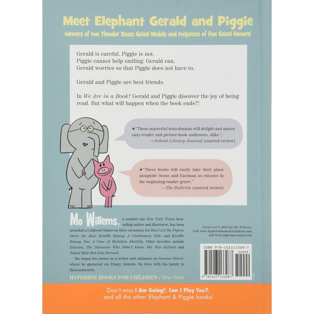 In We Are in a Book! Gerald and Piggie discover the joy of being read. But what will happen when the book ends?