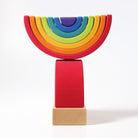This rainbow stacker from Grimm's includes all 7 colours of the rainbow as they occur in nature (red, orange, yellow, green, blue, indigo, and violet). This unique stacker comes with two complete rainbows and a pedestal stand, allowing for a variety of play possibilities. Young ones can use the blocks to stack onto the pedestal to make rainbows, flowers, towers, and more. As your children get older, they can use the curved pieces to act as beds for fairies and in dollhouses, fences for farm animals, or ramps for ball runs and vehicles. The creative opportunities are endless with the rainbow stacking toys from Grimm's.
