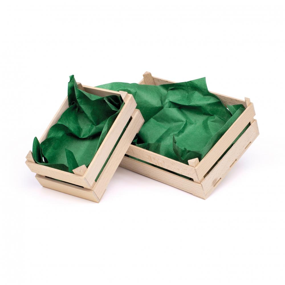 Wooden crate for setting up play market stands, grocery stores, and general small toy storage. Small crate also available (sold separately).
