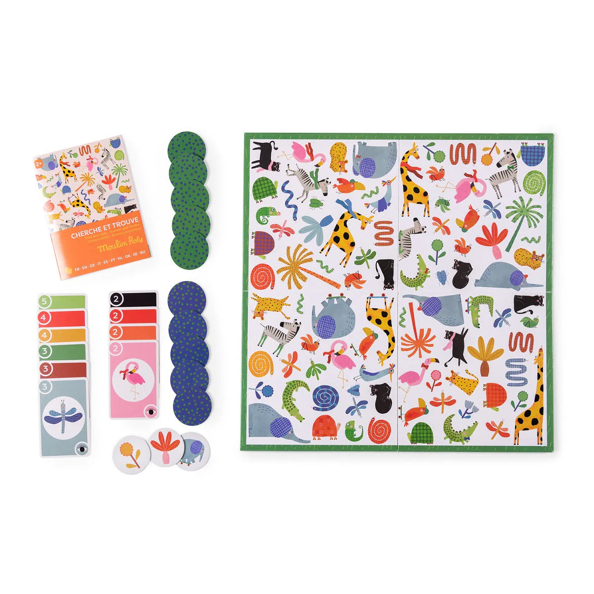 A search and find game with the cheerful and colourful illustrations from the Les Toupitis collection. Contains 1 board, 55 cards and 10 challenge cards.