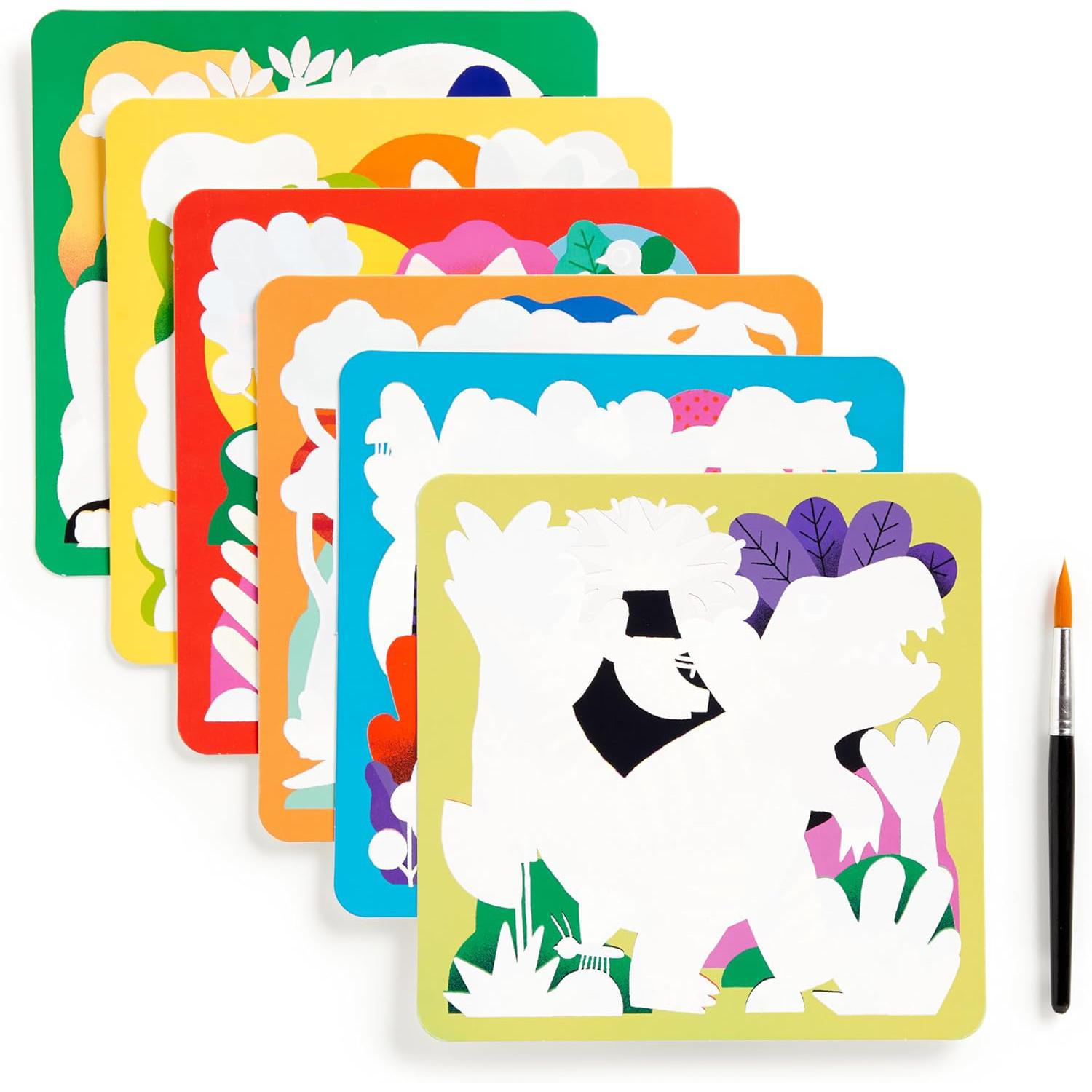 WATER REVEAL KIT - Dive into a world of wonder and creativity with our Mighty Dinosaurs Color Magic Water-Reveal Kit! Watch as adorable dino creatures and prehistoric scenes come to life before your eyes with a splash of water. Each sheet features enchanting artwork of your favorite dinosaur and other jurassic marvels, waiting to be revealed through the magic of water. Simply dip the included brush in water and brush it over the white areas of the sheet to reveal vibrant colors andintricate detail.