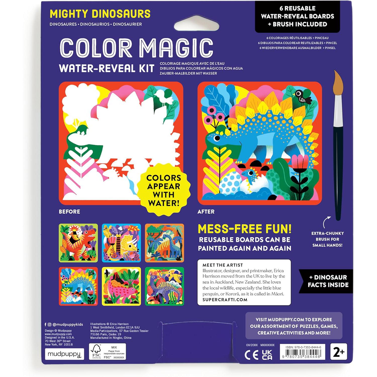Mudpuppy mighty dinosaurs color magic water-reveal kit