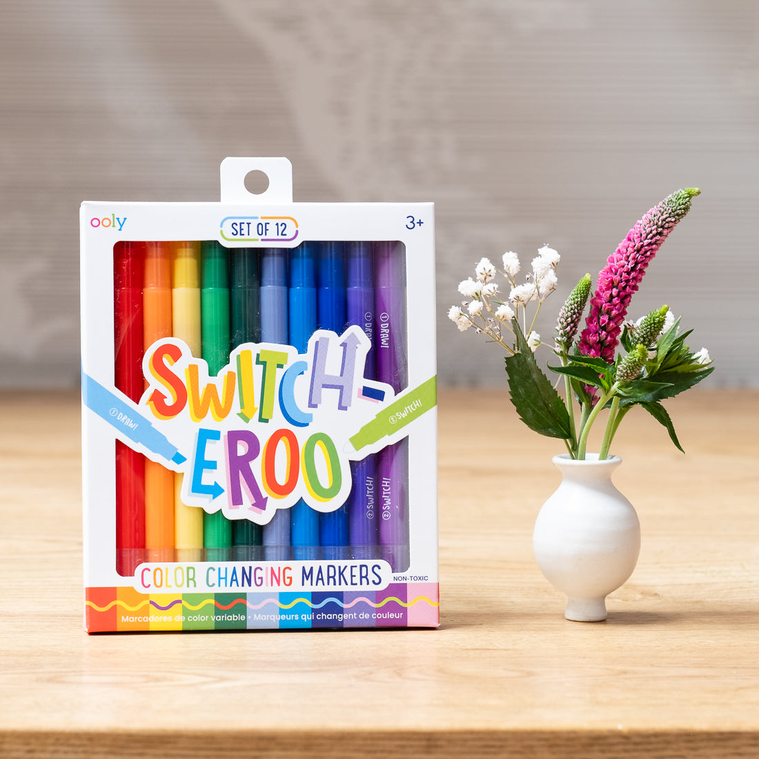 Switch-Eroo Color Changing Markers surprise and delight with one regular color and one mystery color change. Color with the regular side, then use the mystery color change side (white tip) for a wonderful transformation. Add an extra artsy layer with this amazing set that is sure to spark happiness.