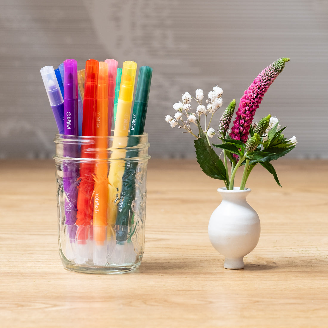 This set of twelve color markers comes with chiseled tips for both thick and thin strokes. Color boldly and then change it up in a different way each time. Just use any of the white ends to draw or color over your colored in area. Make mystery color change designs or turn your entire piece of art on its head by changing everything. Watch wonder unfold as you create a new masterpiece with these one of a kind color markers.