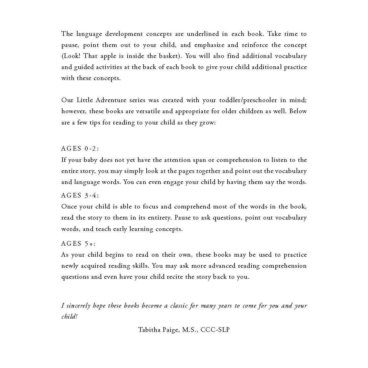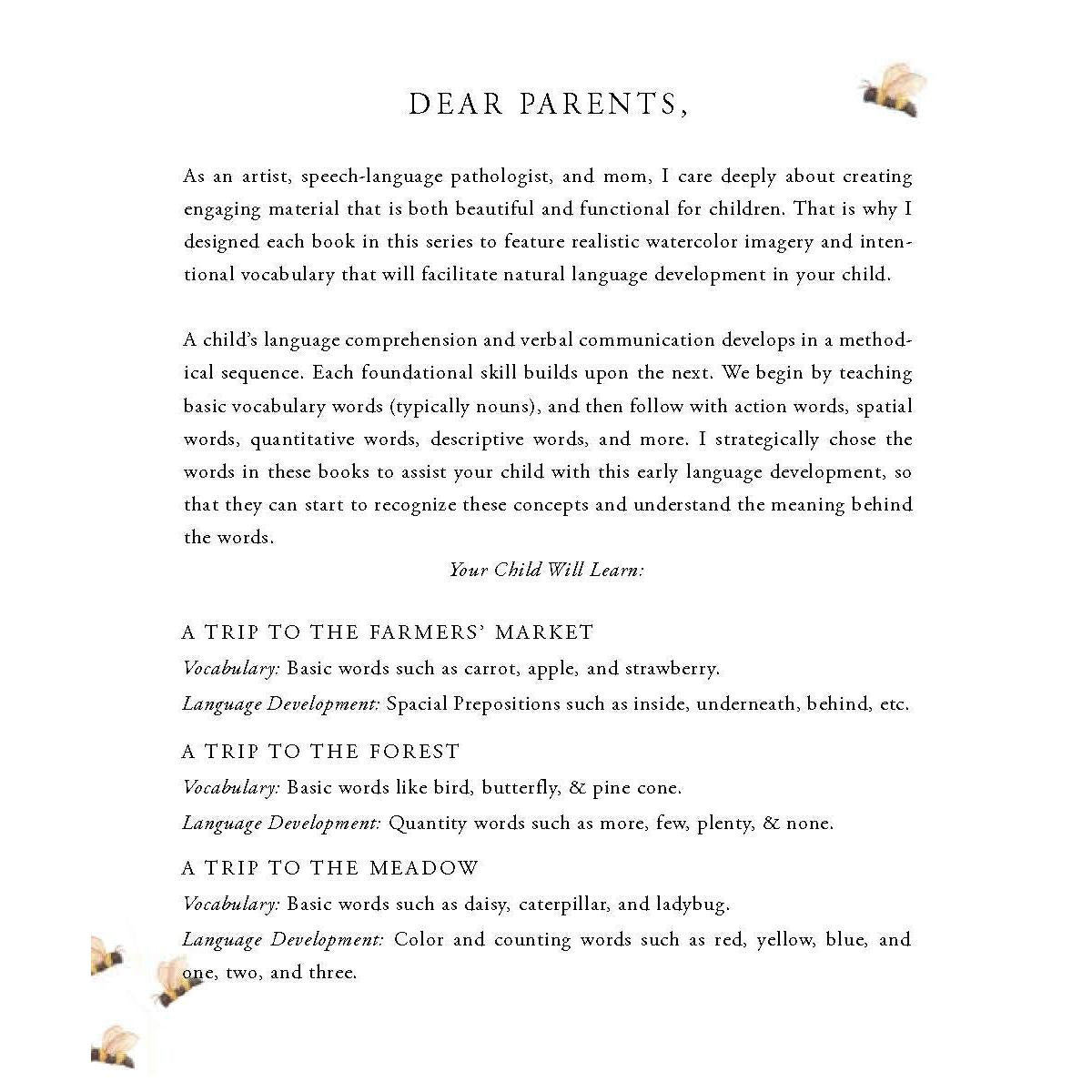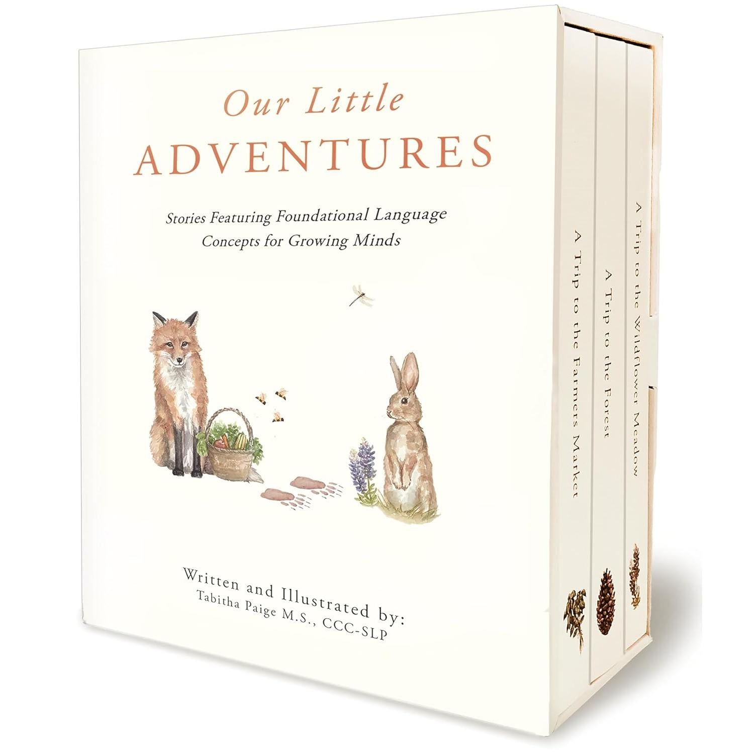 Created by licensed speech pathologist and artist Tabitha Paige, MS, CCC-SLP, the three board books in the Our Little Adventures box set take parents and toddlers or young children on trips to the farmers market, the forest, and a wildflower meadow. Each book features realistic watercolor imagery and a story carefully crafted by Tabitha, who has years of experience helping young children develop their language skills.