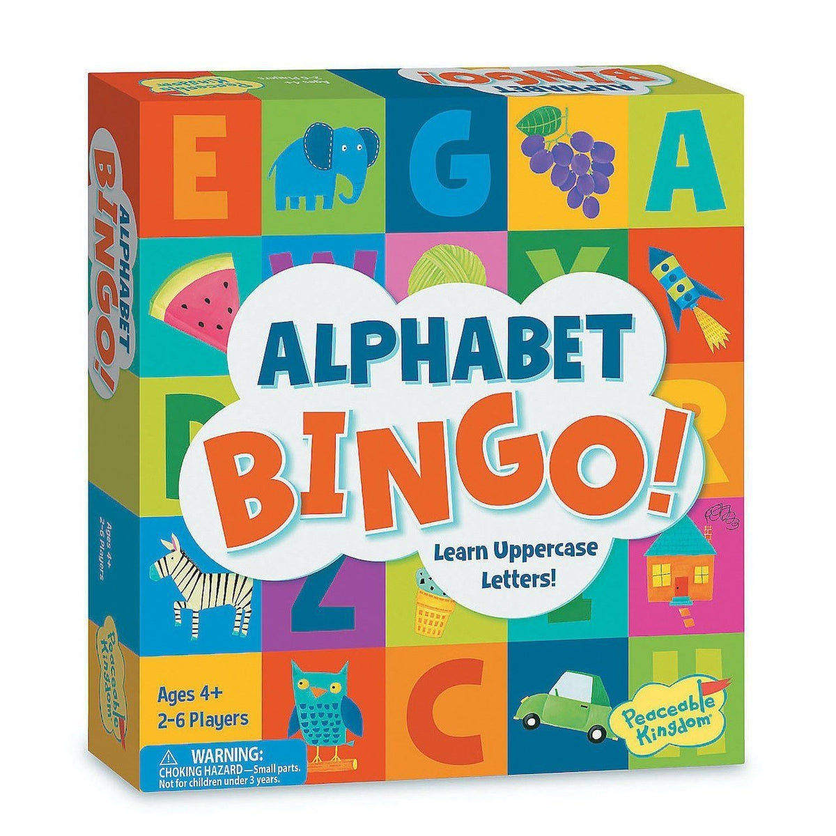 A entertaining twist on classic bingo, Alphabet Bingo from Peaceable Kingdom helps kids learn and practice letter names and sounds. A fun and interactive compliment to school lessons. Reach your hand in the bag and pull out a letter token - if you have a match, you're on your way to a bingo! Includes 6 games boards so the whole family can get in on the action.