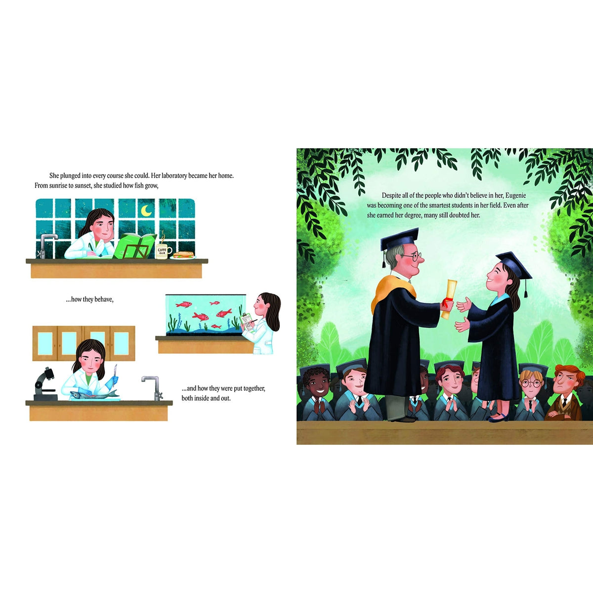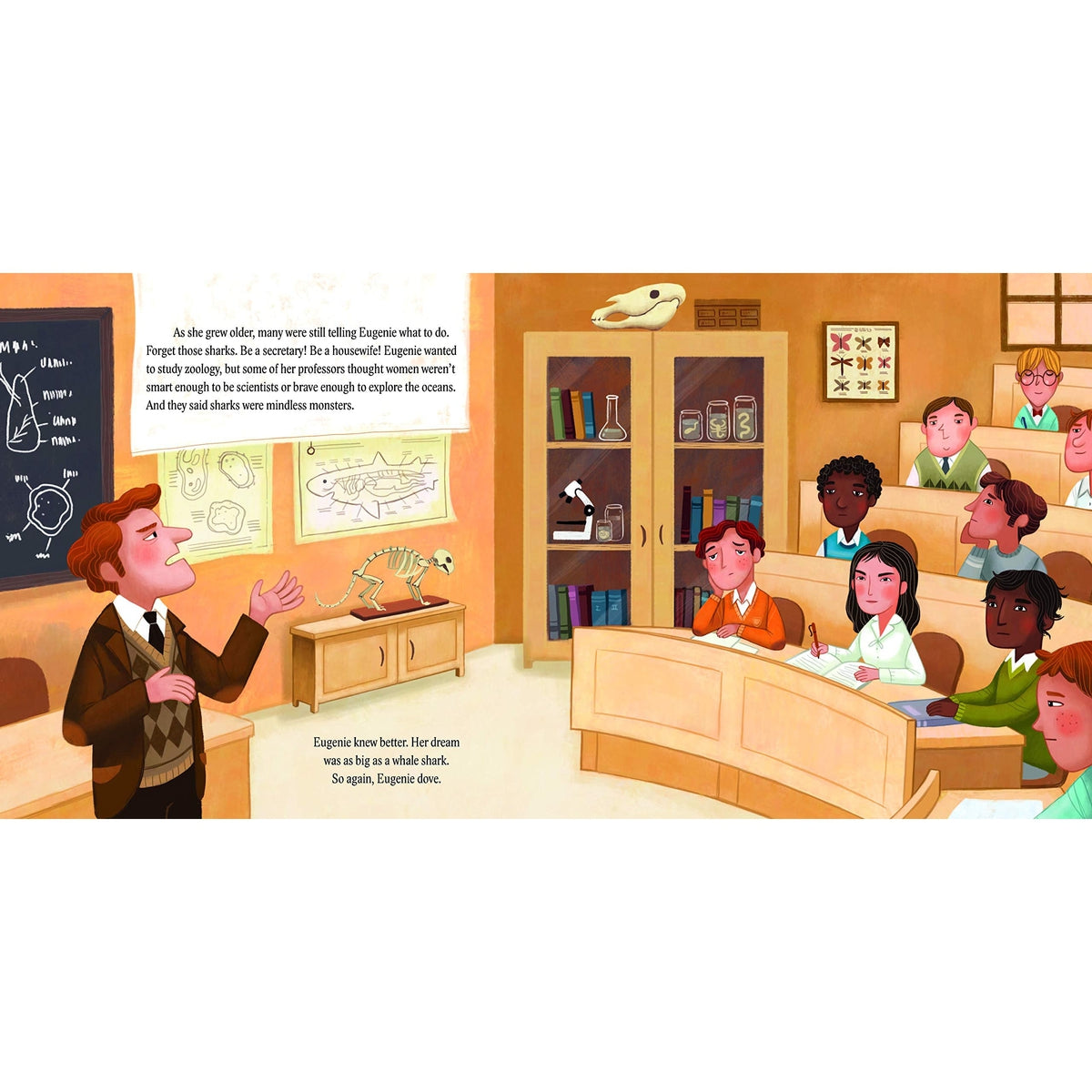 Determined to prove them wrong, Eugenie devoted her life to learning about sharks. After earning several college degrees and making countless discoveries, Eugenie wrote herself into the history of science, earning the nickname SharkLady." Through her accomplishments, she taught the world that sharks were to be admired rather than feared and that women can do anything they set their minds to.